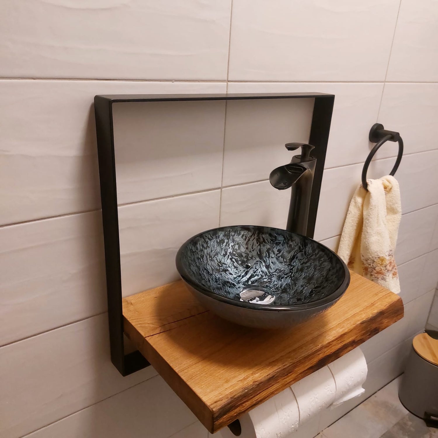 Rustikales Wandregal aus Eiche & Metall – Hochformat