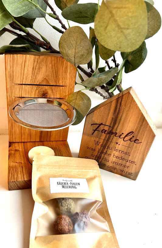 Set - Räucherschale, Räucherperlen & Deko Haus