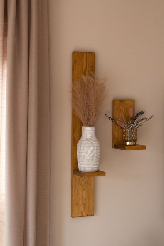 Rustikales Wandregal aus Eiche & Metall – Hochformat