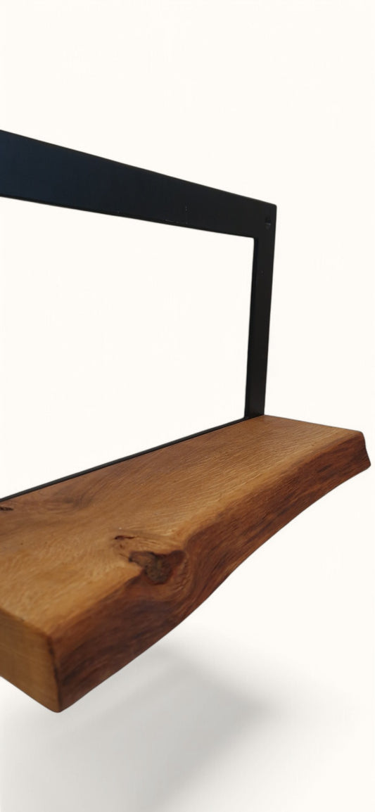 Rustikales Wandregal aus Eiche & Metall – länglich