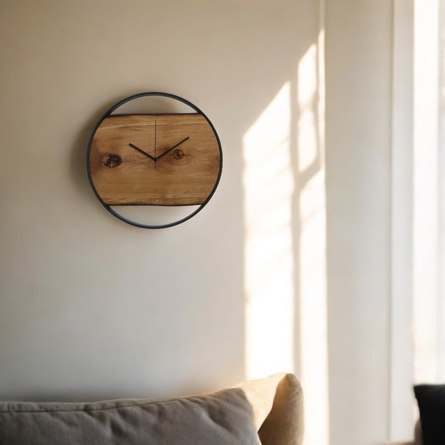 Entdecke die stilvolle Wanduhr aus Eiche, die Funktionalität mit modernem Design verbindet. Mit ihrem minimalistischen Look und den natürlichen Holzakzenten ist sie ein zeitloses Highlight für deinen Wohnraum – mehr als nur ein Zeitmesser, sondern ein dekoratives Statement.